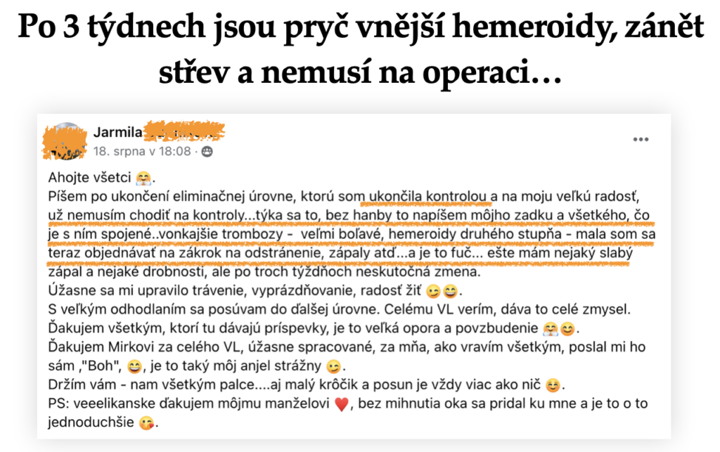 • Přestali jste se bát, že váš stav může už jen zhoršovat a ulevilo se vám od bolestí.
