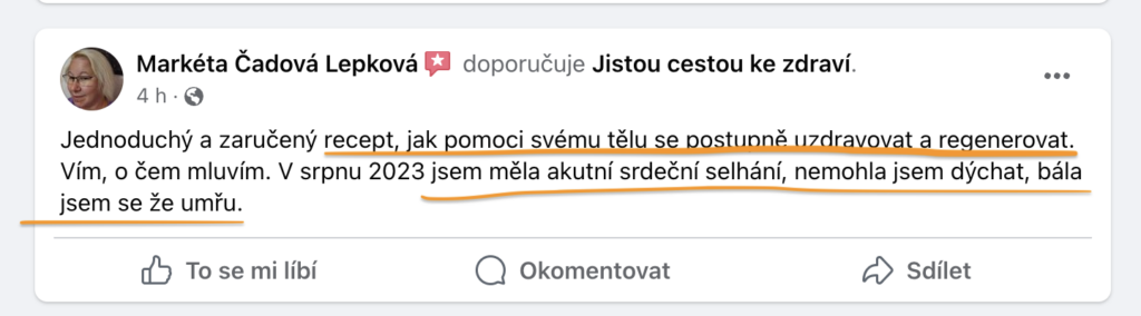 "Jen v roce 2025 mi 156 lidí napsalo, že se uzdravilo z dlouhodobých nemocí jako je cukrovka druhého typu, ekzémy, trávicí problémy, nadváha, bolesti kloubů a mnoho dalšího.