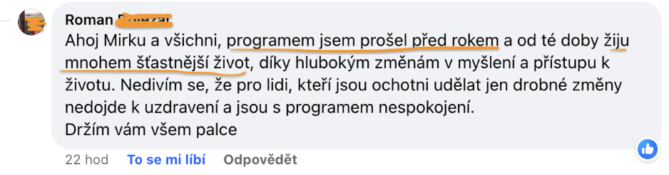 - Uzavřená Facebook skupina s uzdravenými pro maximální podporu